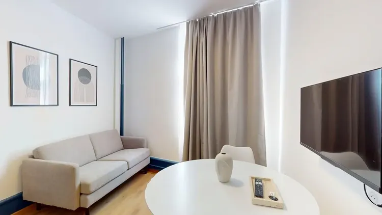 The Porte de France residence offers a modern co-living concept in a fully renovated historic building, where each unit features its own private bathroom and kitchen.
