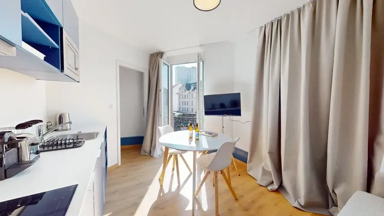La résidence Porte de France propose un concept moderne de co-living dans un bâtiment historique entièrement rénové, où chaque logement dispose de sa salle de bain privative et de sa propre cuisine.